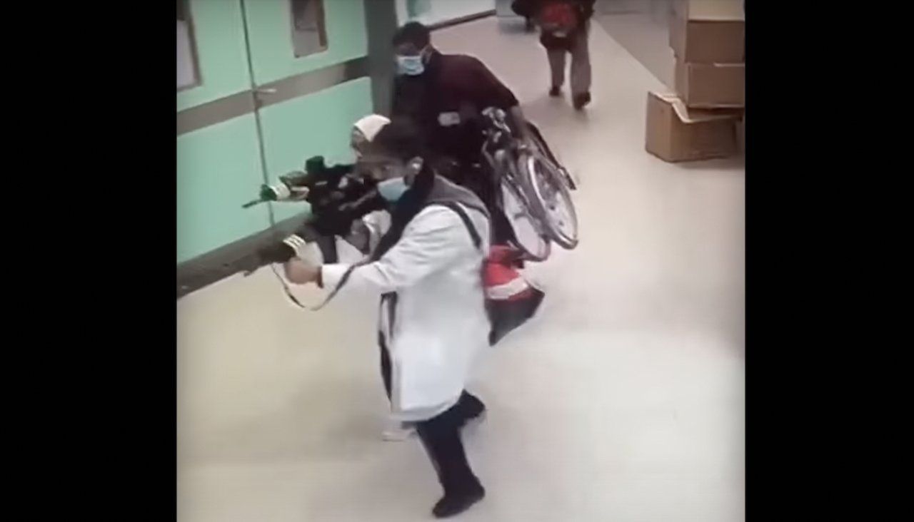 Hospital surveillance video showed about 10 people dressed in medical scrubs and in headscarves and women's clothing going through a corridor armed with rifles, Reuters said.