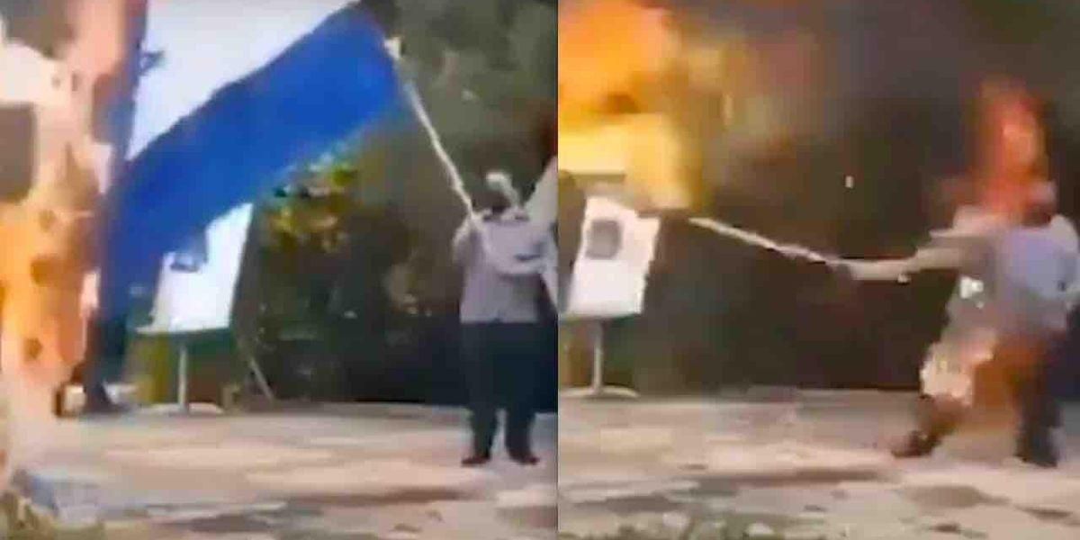 But the freshman senator had the ideal rejoinder under his sleeve, getting on the roof of his abode and holding up a huge blue-and-white Israeli flag which wafted in the wind high above the angry throng.