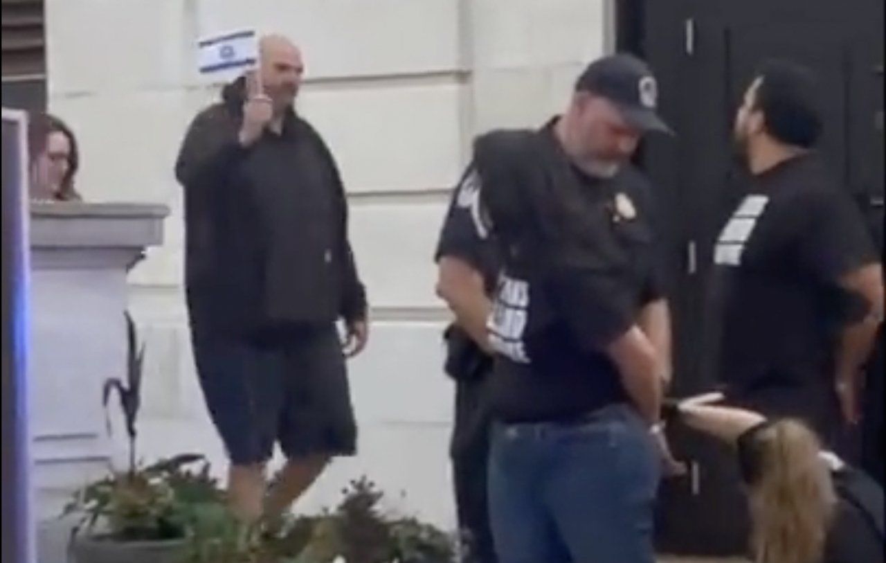 "Fetterman, Fetterman, you can't hide! You're supporting genocide!" the left-wing crowd hollered.
