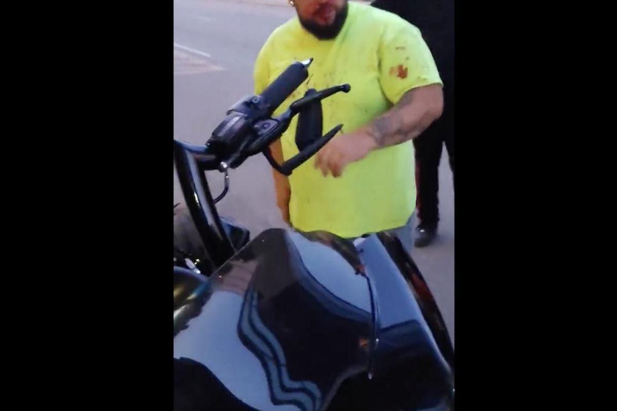 Here's cellphone video purportedly of the attack, though it's shot from a distance. However, the clip does show the injured motorcyclist — with a bloody face and shirt — close up after the attack. Content warning: Profanity: