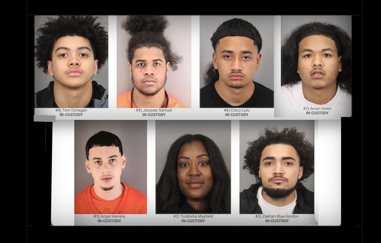 However, detectives soon identified seven suspects: Angel Herrera, 21; Toddisha Mayfield, 31; Zakhari Blue-Gordon, 23; Tom Donegan, 19; Jacques Samuel, 18; Cisco Lutu, 18; and Amari Green, 21, police said.