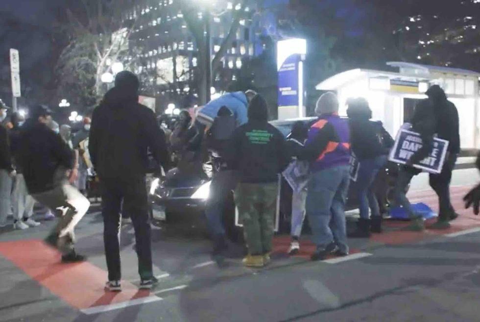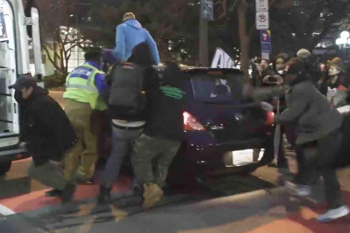 But the demonstration was interrupted when a motorist was caught on video navigating a car through the crowd — and protesters lost it.