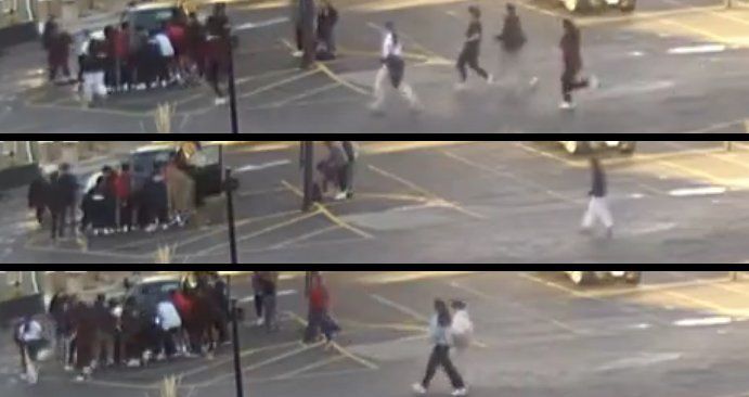 Surveillance footage shows kids rushing out and attempting to lift the vehicle.