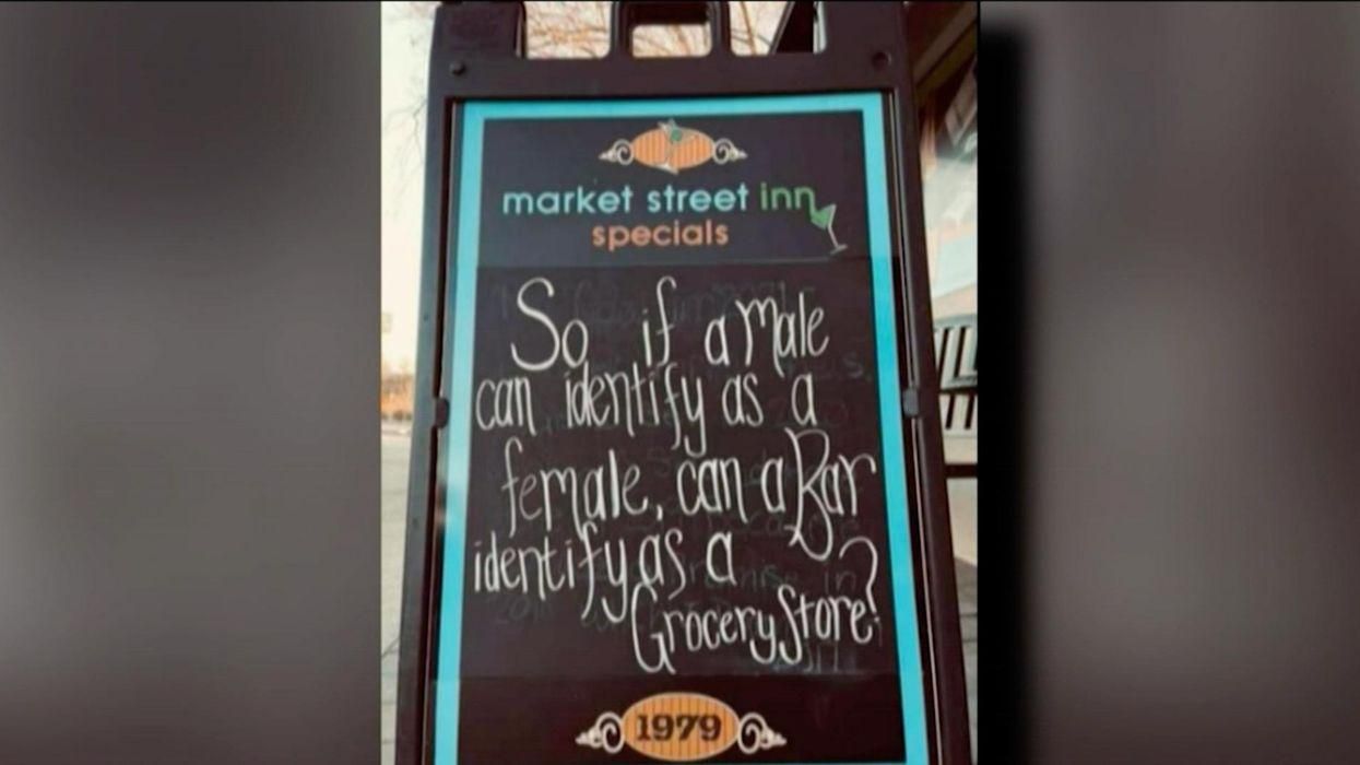 Restaurant owner issues apology after 'insensitive and derogatory' display sign: 'If a male can identify as a female, can a bar identify as a grocery store?'