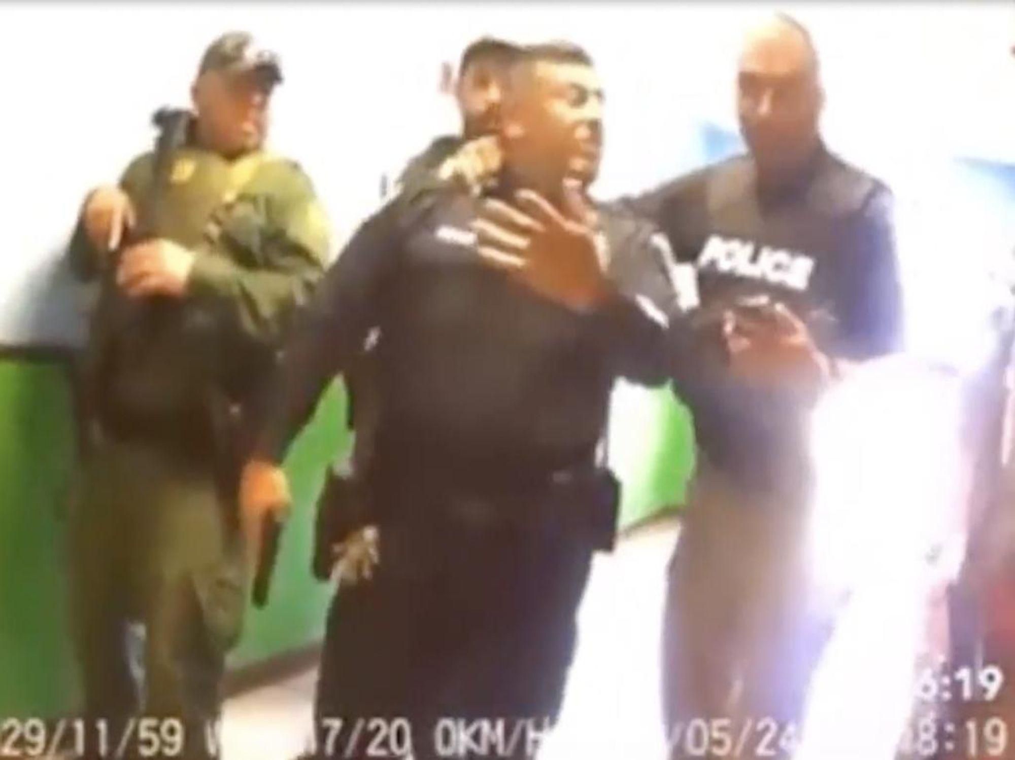 “We got an officer, Officer Ruiz, whose wife had called him and said she [had] been shot, and she’s dying,” McCraw said, according to video of the hearing. “What happened to him was he tried to move forward into the hallway ... he was detained, and they took his gun away from him and escorted him off the scene.”