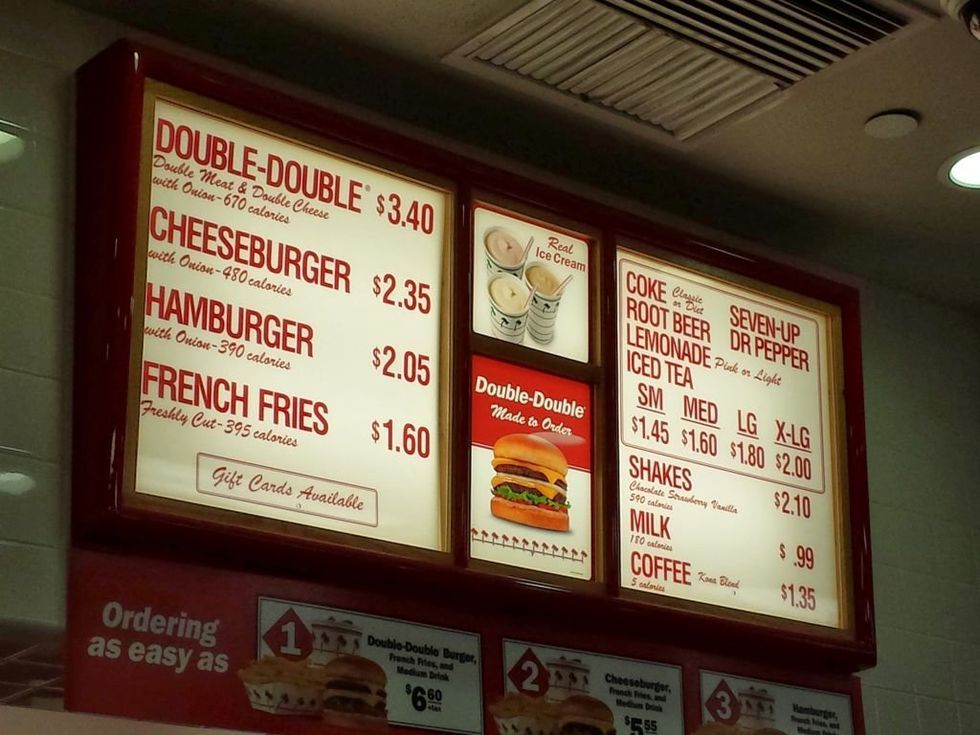 The price of a double-double meal — which includes a burger, fries, and a drink — now costs as much as $13.63 in San Francisco, KRON-TV reported. The same meal costs about $11.44 in Los Angeles County, according to KTLA-TV.