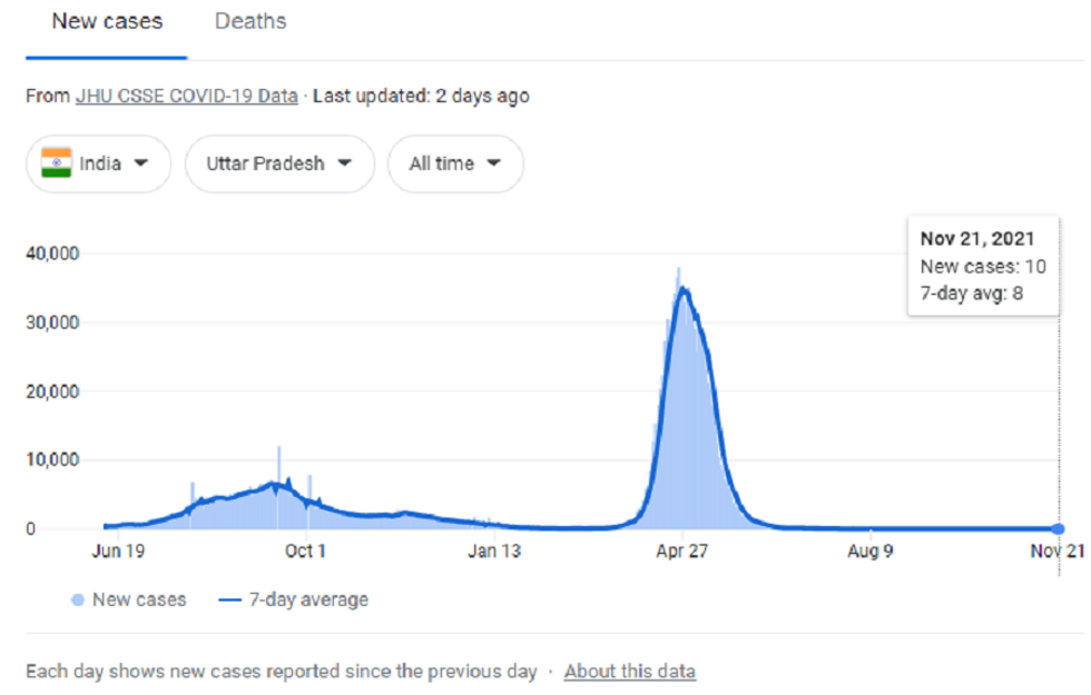 Then, of course, there is Uttar Pradesh, the largest state in India, which has crushed its curve to the point that the virus is not just in low circulation, but essentially eradicated since June.