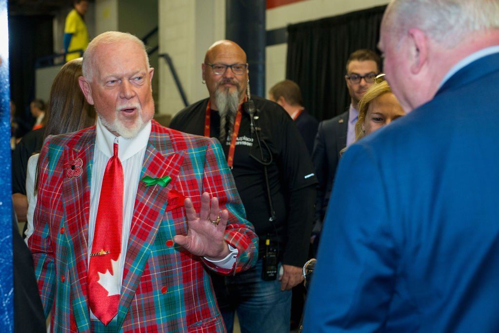 BOSTON, MA. — 1970s: Don Cherry, coach of the Boston Bruins, addresses media from his desk at Boston Garden. Photo by Steve Babineau/NHLI via Getty Images