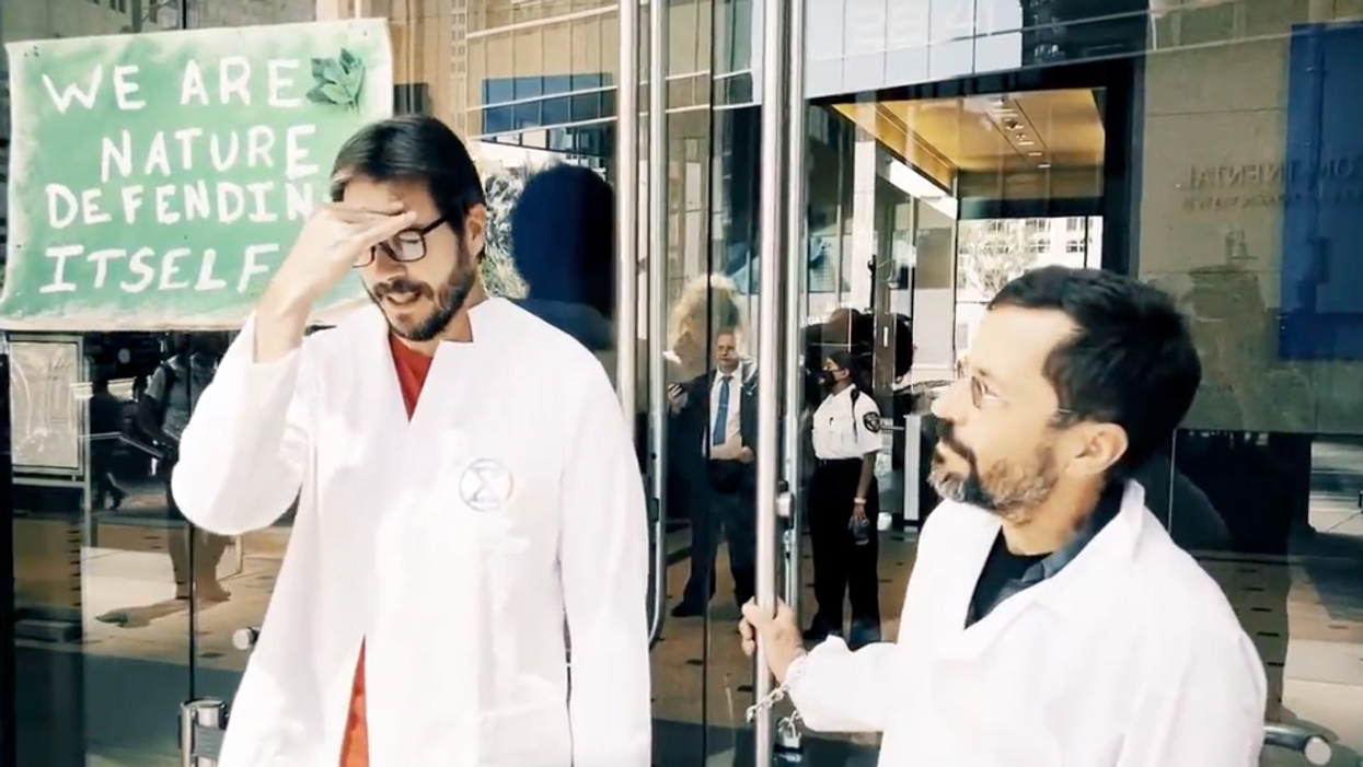 The demonstration appeared to be coordinated by a group called Scientist Rebellion, a branch of Extinction Rebellion that empowers concerned scientists and activists to commit acts of civil disobedience to advocate for climate action.