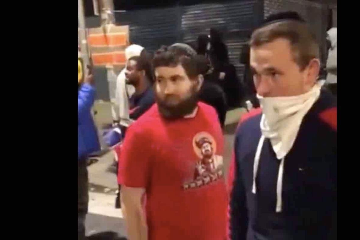 But one fully masked individual apparently didn't think they were leaving quickly enough, and so he takes it upon himself to shove one of the Jewish men backward.
