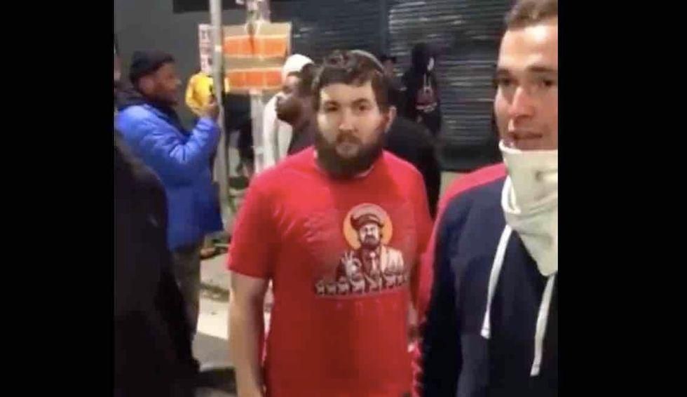 Another hollers at the Jewish men that "y'all startin' s**t!"
