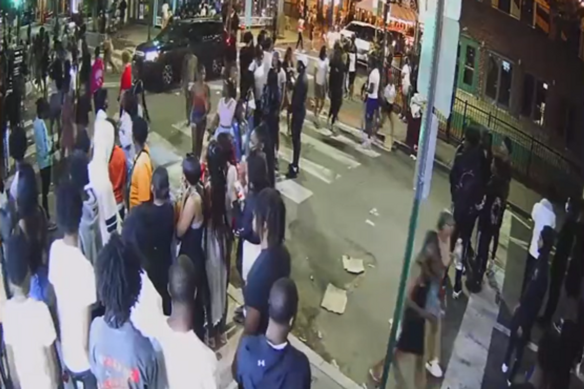 \u201cIn this screenshot from another angle of the surveillance footage Fox 29 obtained, you can see where the red circle is someone returning fire after shots initially fired into the crowd from opposite direction. At least two shots returned.\u201d— Marcus Espinoza (@Marcus Espinoza) 1654436561