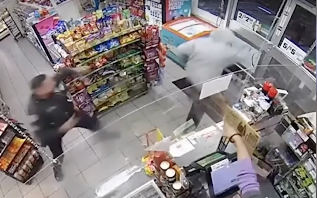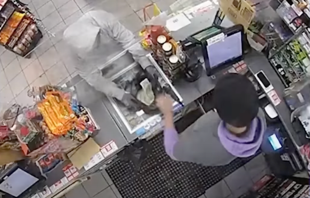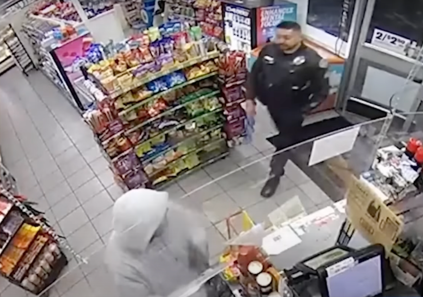 The crook might have gotten away with an easy heist, but as it was all going down, the security camera caught West Covina Sgt. Abel Hernandez — a frequent customer of the 7-Eleven — walking into the store to purchase some water and greet the clerk, the station said.