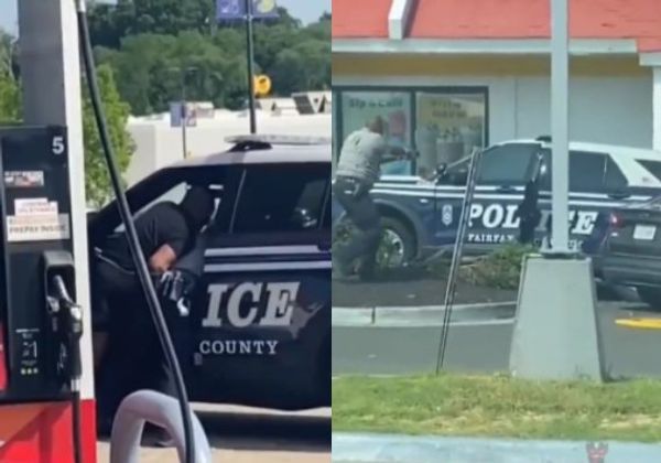Video taken by a witness shows the police SUV put in reverse and speeding backward out of the gas station before crashing into a parked car at a McDonald's parking lot. The two men inside the police car are seen struggling. Numerous gunshots can be heard.