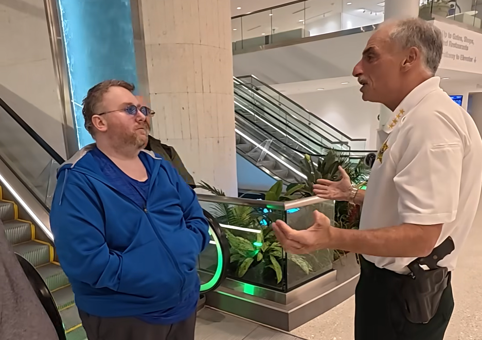 Viral video shows Volusia Sheriff Mike Chitwood speaking face-to-face with 45-year-old Matthew Moulton at the Daytona Beach International Airport.