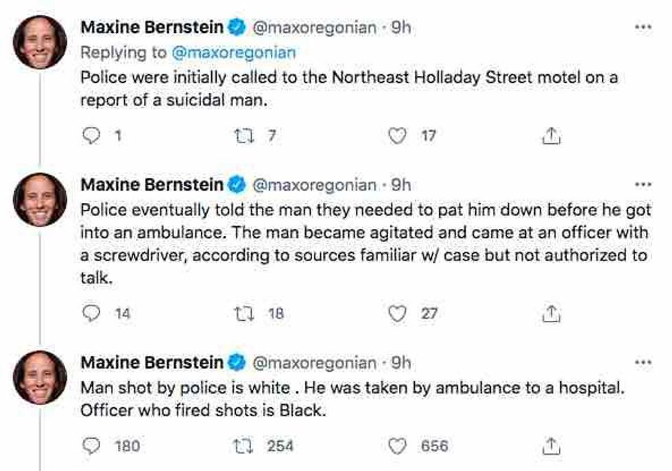 In April, the Oregonian posted a tweet that identified a man Portland police fatally shot as white "in light of social unrest prompted by police shootings of Black people." The paper deleted the tweet after backlash.