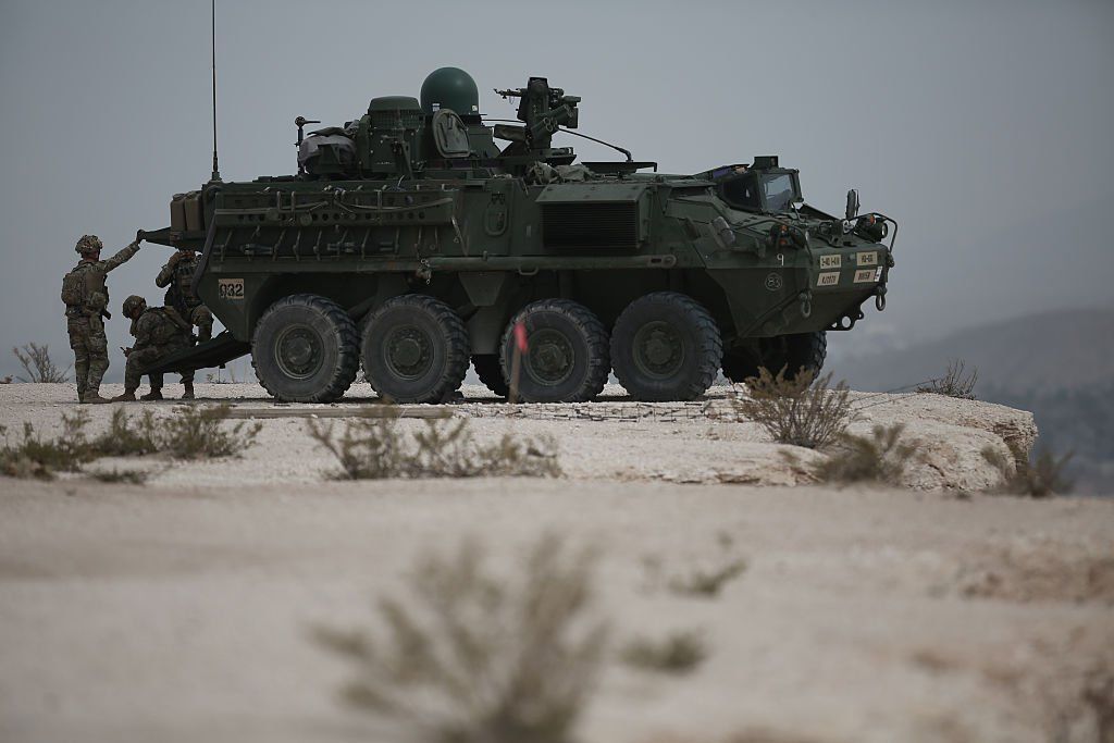 California National Guard troops outside a Los Angeles federal building on June 9, 2025. Photo by David McNew/Getty Images