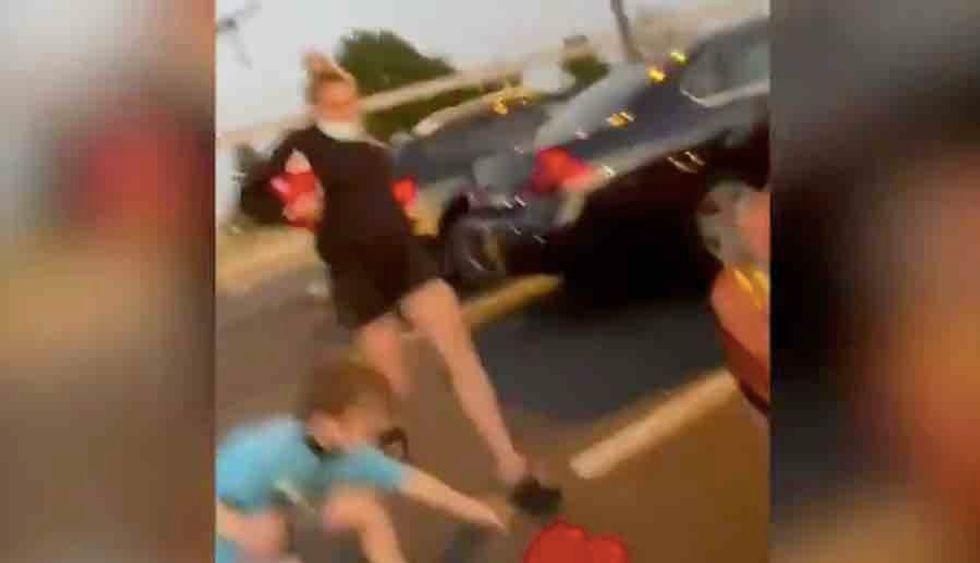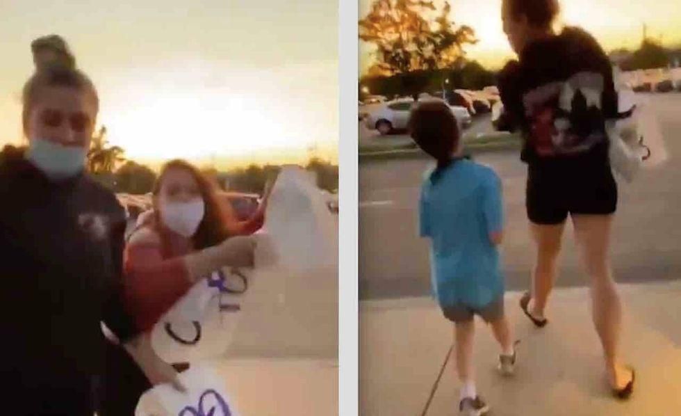 Video of the incident shows two women harassing a mother and her young son. The women ripped pro-Trump signs and stole a MAGA hat sitting near the boy, whose mother recorded the altercation.