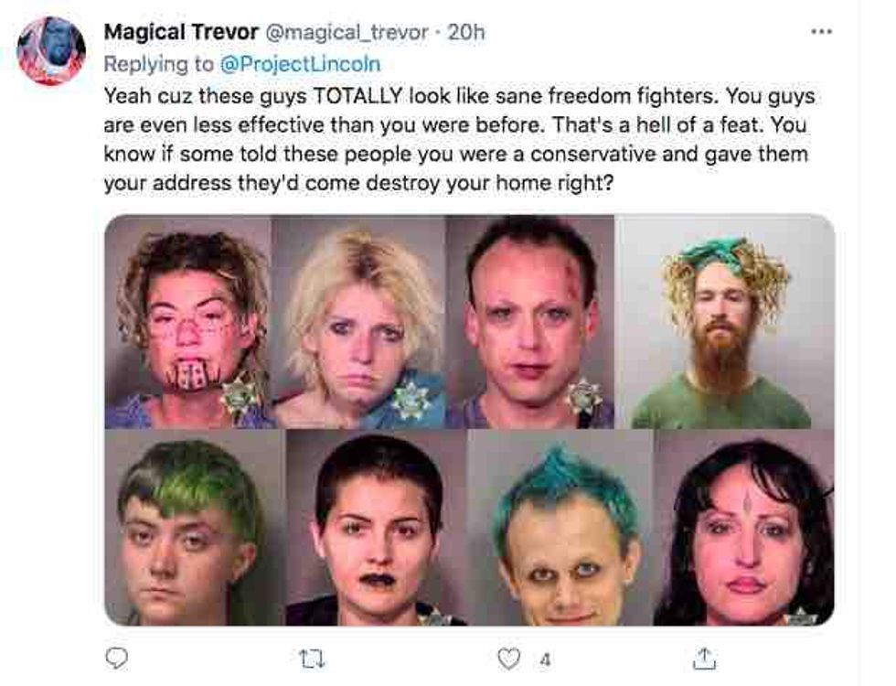 He continued, "And that a lot of the people involved in the planning, Antifa, and then even some right-wing groups who are enemies of his—and that they were doing it in order to hurt him —including some right-wing groups that operate for The Lincoln Project or have been working with The Lincoln Project at various times. You have a couple of wolves in sheep's clothing."