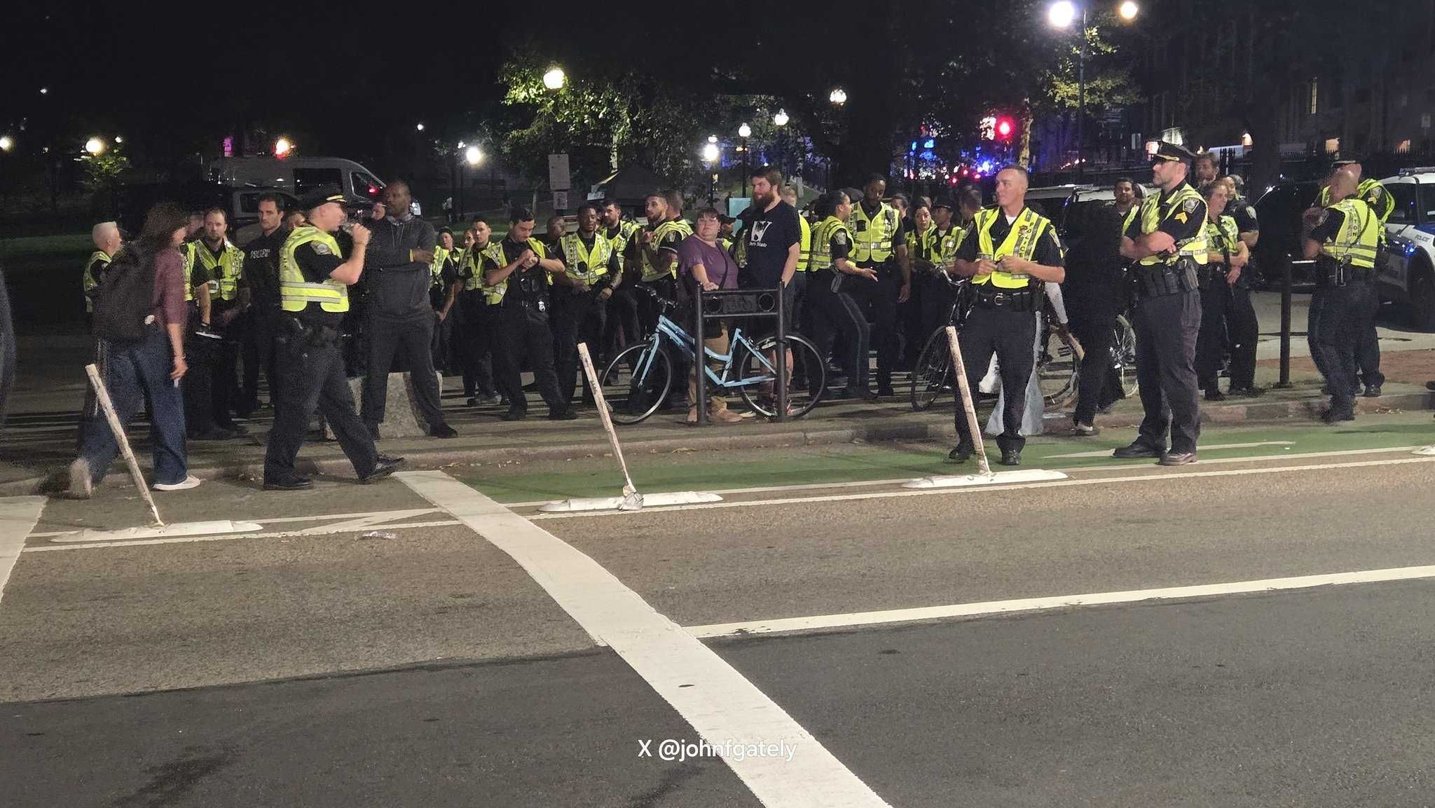 Four officers sustained non-life-threatening injuries, including broken bones, in scuffles with the protesters.