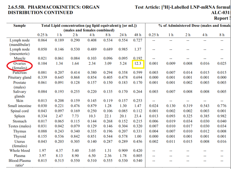 - Whatcould be some of the possible ramifications of the spike spreading throughoutthe body aside from blood disorders? How about fertility issues? A shocking newpreprint study authored by researchers from Washington University inSt. Louis, the University of Illinois at Urbana-Champaign, and Harvard found ashockingly large number of women experienced menstrual irregularities from theshots. They found 42% of women experienced heavier bleeding, while only 44%reported no changes to their menstrual cycles. A whopping 66% ofpost-menopausal women experienced breakthrough bleeding. A University of Chicago survey sought torecruit 500 women with menstrual irregularities in order to study the cause andeffect, and instead, they got 140,000 submissions. Could this be because, as a biodistribution report in Pfizer'spharmacokinetic pre-clinical animal study submitted to the Japanesegovernment found, the lipid nanoparticles of the vaccine were accumulating inthe ovaries in significant numbers – more than in any other place but thespleen?