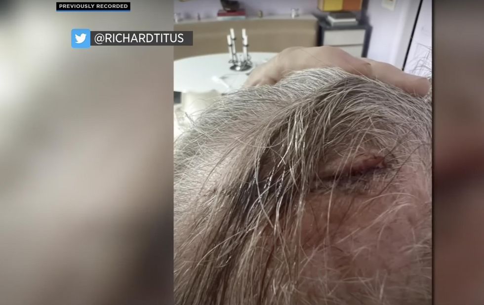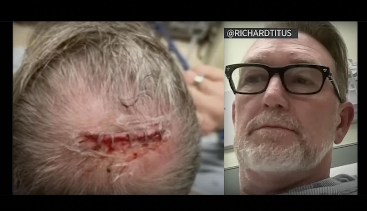 Sure, the impact knocked Richard Titus to the ground — and left a significant wound that required five staples to close it — but he got up and punched one of the attackers, after which they likely figured they'd lose this fight and ran away.