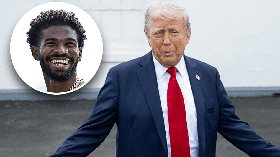 Shedeur Sanders speaks to the media during the 2025 NFL Combine despite not participating. Photo by Justin Casterline/Getty Images