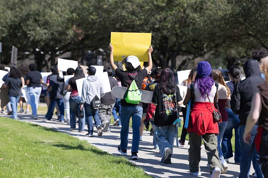 Students exited campus during school hours in protest of federal immigration enforcement policies. The demonstrations drew large crowds downtown and near major intersections.