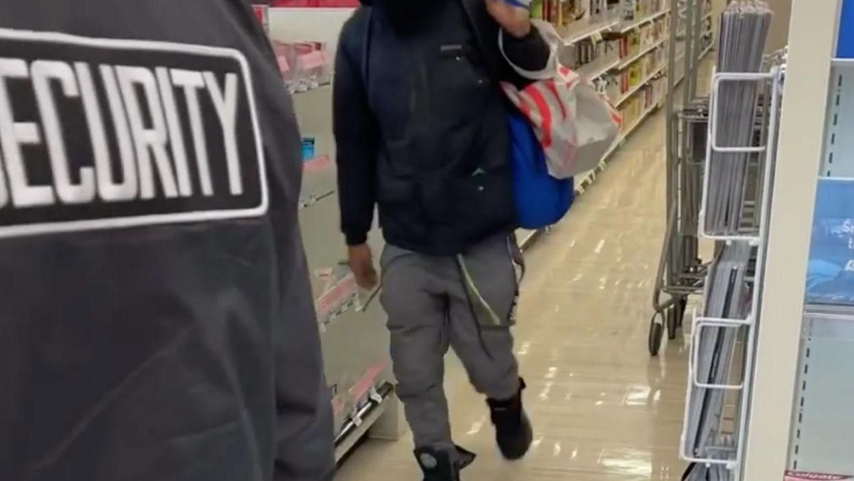 In the video, the suspect — who remains unnamed at the time of this reporting — can be seen walking down the aisle with two stuffed bags, nodding to the security guard positioned near the front of the store. He unhurriedly strolls out of the store and continues walking down the street as if nothing had happened.