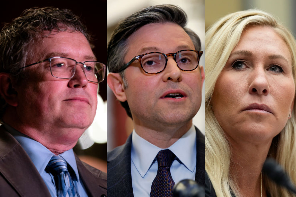 - "By passing the Democrats' agenda and handcuffing Republicans' ability to influence legislation, our elected Republican Speaker Mike Johnson has aided and abetted the Democrats and the Biden administration in destroying our country."