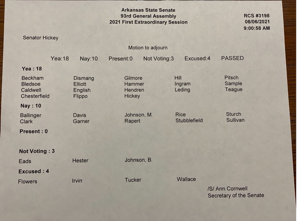 For example, where is the rush to make Ivermectin over the counter and ensure people are getting early treatment? Yet, too many Arkansas Republicans were in a rush to go home. Despite holding a 4-1 majority in the Senate, a number of Republicans joined with the Democrats to support the motion to adjourn. As always, they got just enough votes for the motion to pass.