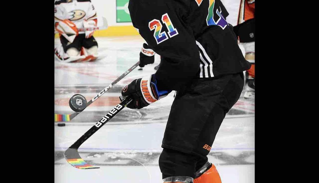 The Flyers wore rainbow colors on their warm-up jerseys and used sticks with rainbow tape, which ESPN said are being auctioned by Flyers Charities with proceeds going toward the team's "efforts to grow the game in diverse communities."