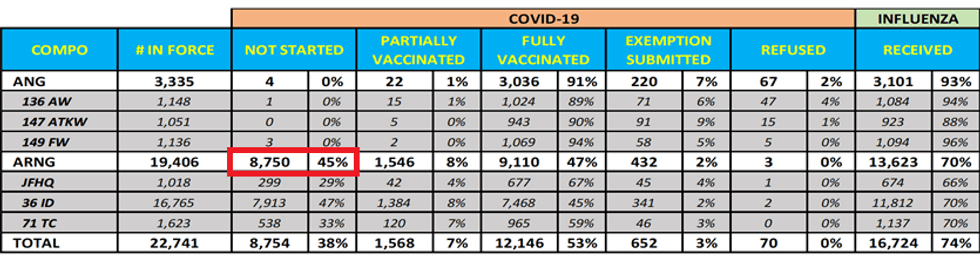 As you can see, just 47% of the Texas Army National Guard are fully vaccinated, and 45% — accounting for 8,750 troops – have not begun the shots. At the border, 48% of the soldiers, nearly 3,000 of them, are unvaccinated, according to my source. And from speaking to two sources on the ground in the Texas Guard, it appears that most of them will refuse to get the shots. Will Gregg Abbott allow them to be terminated? Will Republicans in the U.S. Senate vote for the upcoming budget bill that continues to fund the DOD mandate?