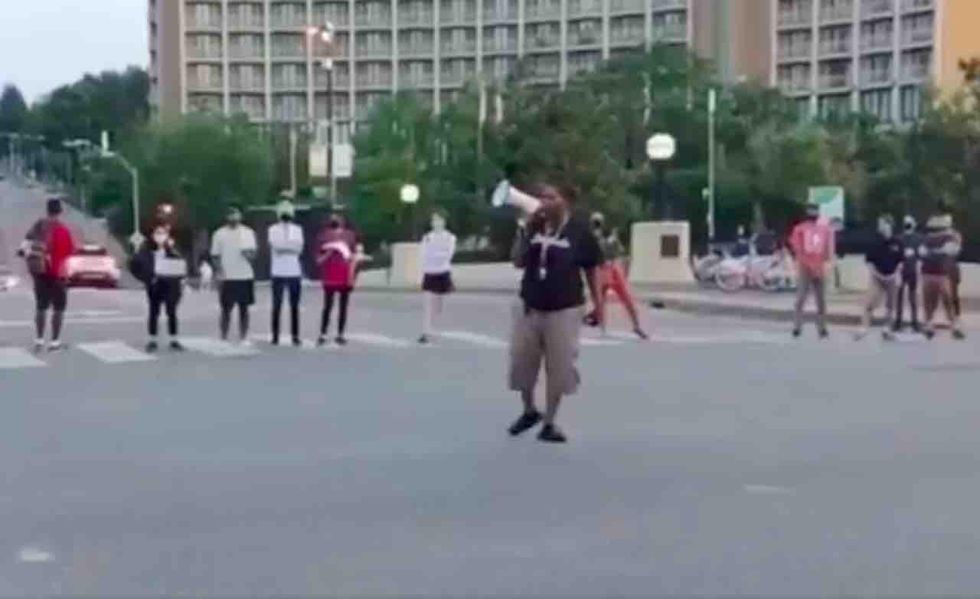 Video recorded in Kansas City on Tuesday — the anniversary of George Floyd's death while he was in the custody of Minneapolis police — reportedly shows a Black Lives Matter protestor standing in the middle of a blocked-off intersection and directly threatening the lives of police.
