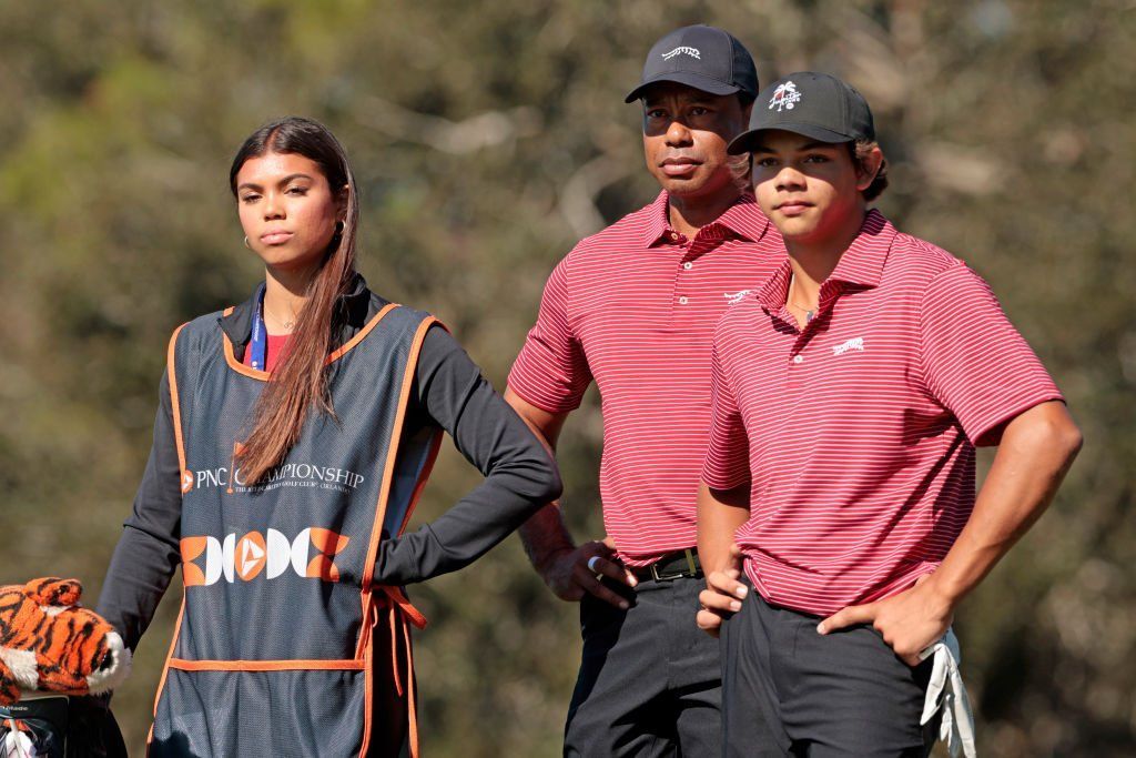 After the shot, the Woods family was caught on a hot mic with 17-year-old daughter Sam — who was the team's caddie that day — giving Charlie a lesson on what comes with success in professional golf.