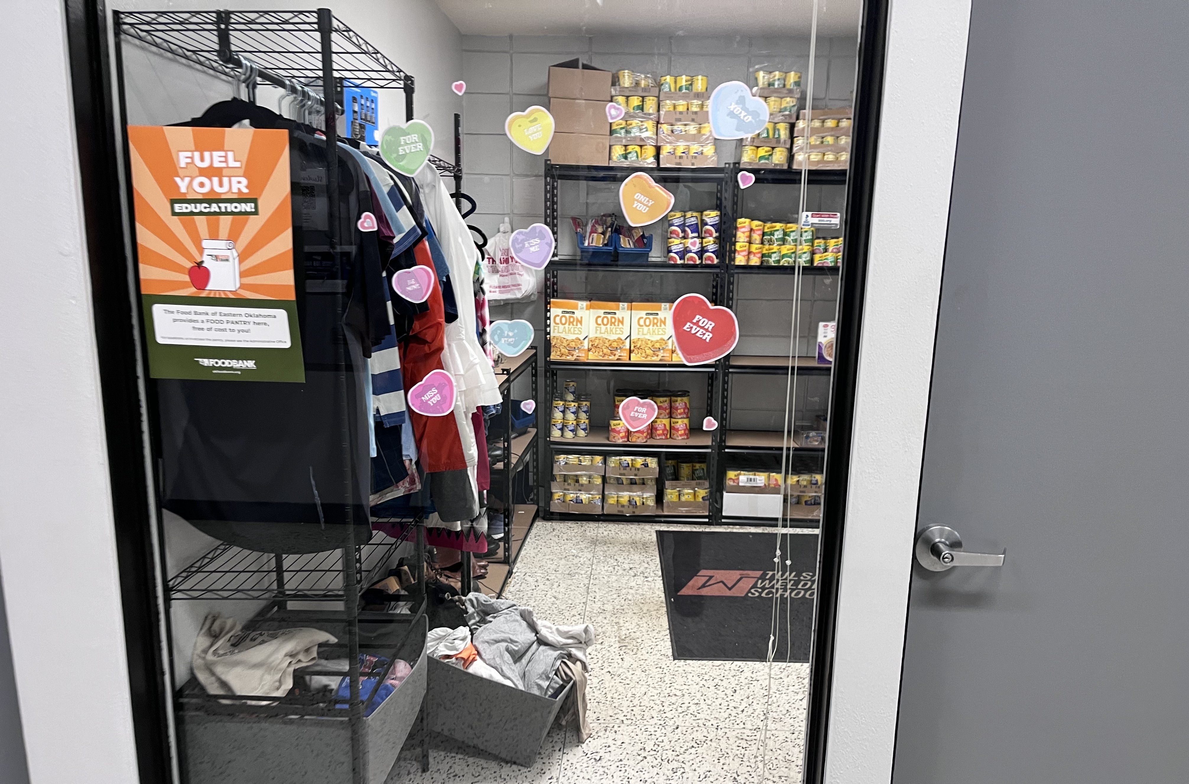 Recognizing that many students come from tough financial situations, the campus provides resources like a food pantry and donated work gear.