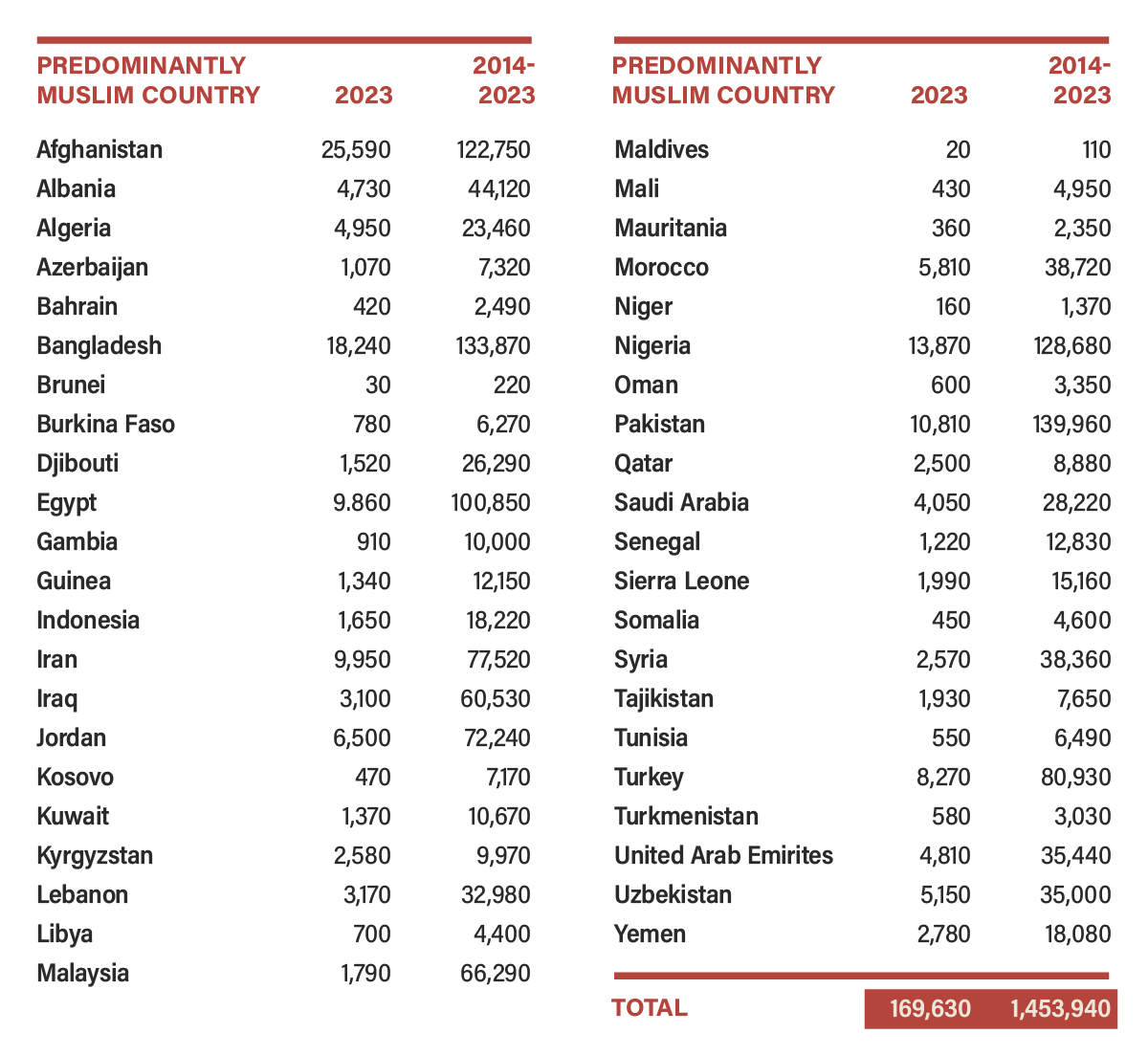 The numbers are staggering. By my calculation, the U.S. admitted 1,453,940 immigrants from roughly 43 majority-Muslim countries between 2014 and 2023. That figure doesn’t include over 100,000 student visas, nor the thousands who’ve overstayed tourist visas and vanished into the interior.