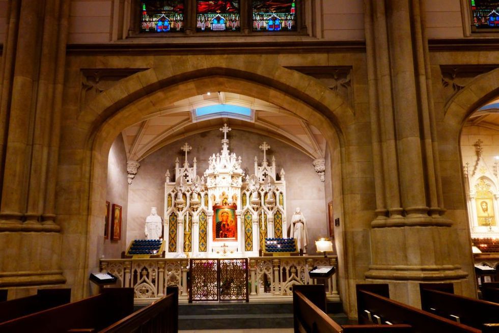 Located in the Midtown Manhattan neighborhood of New York City, the cathedral takes up a full city block. You'll be greeted by towering spires reaching 329.5 feet high. The northern tower houses 19 bells, and the interior features two magnificent pipe organs.