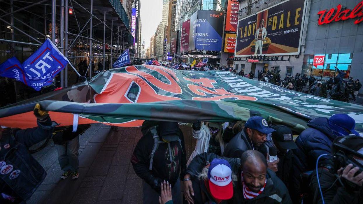 As the Trump supporters made their way to Times Square, NYPD officers attempted to keep counter-protesters at bay. However, there were several tense exchanges and multiple arrests.