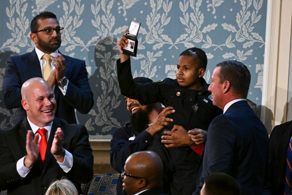 After honoring fallen New York police officer Jonathan Diller and asking Congress to pass legislation mandating the death penalty for cop killers, Trump directed everyone's attention to Devarjaye "DJ" Daniel, a terminally ill Texas boy in the audience who has long aspired to join law enforcement.