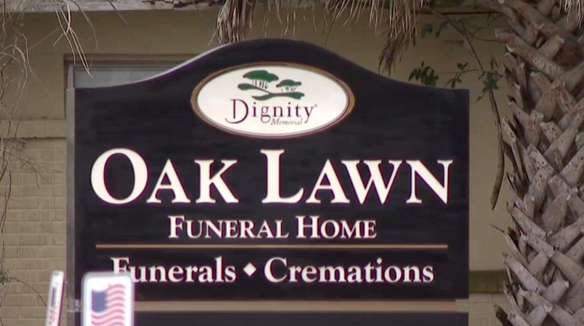 The harrowing incident was reported at the Oak Lawn Funeral Home in Pensacola, Florida, on Tuesday.